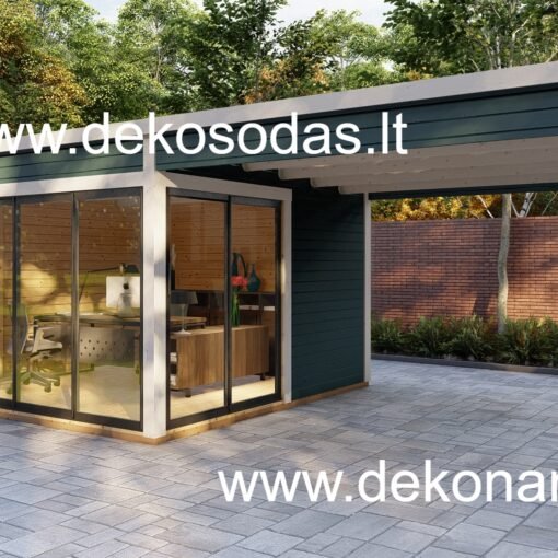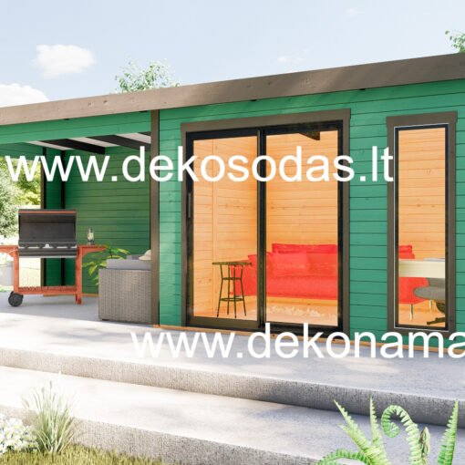 Medinis vienslaitis sandėliukas su dvivėrėmis durimis „Meksika” (3 x 3,5 m, 28 mm,)