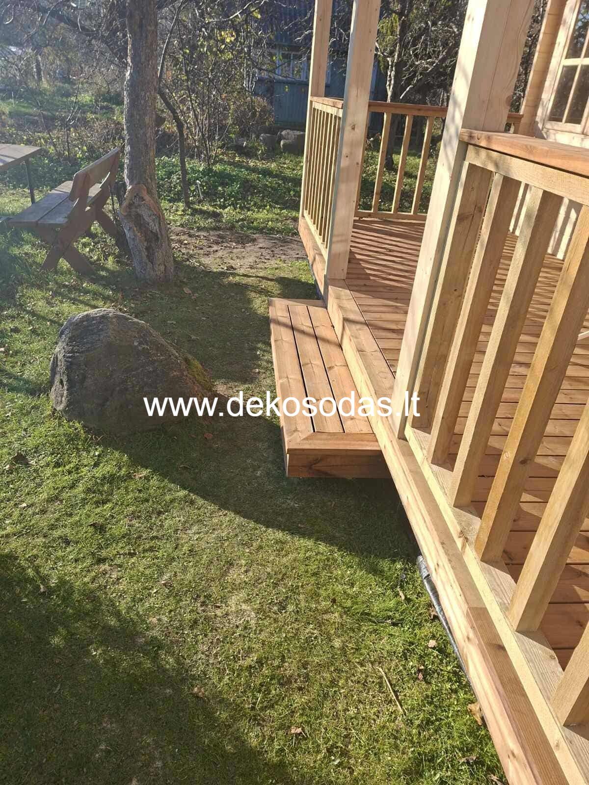 Terasa: 2 metrų pločio, iš impregnuotos medienos