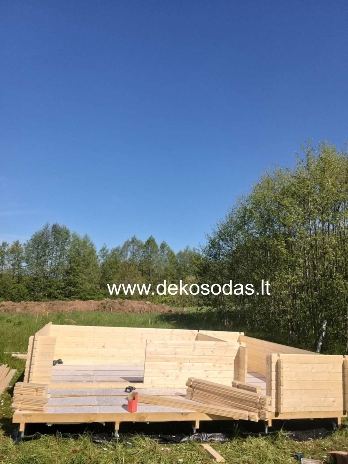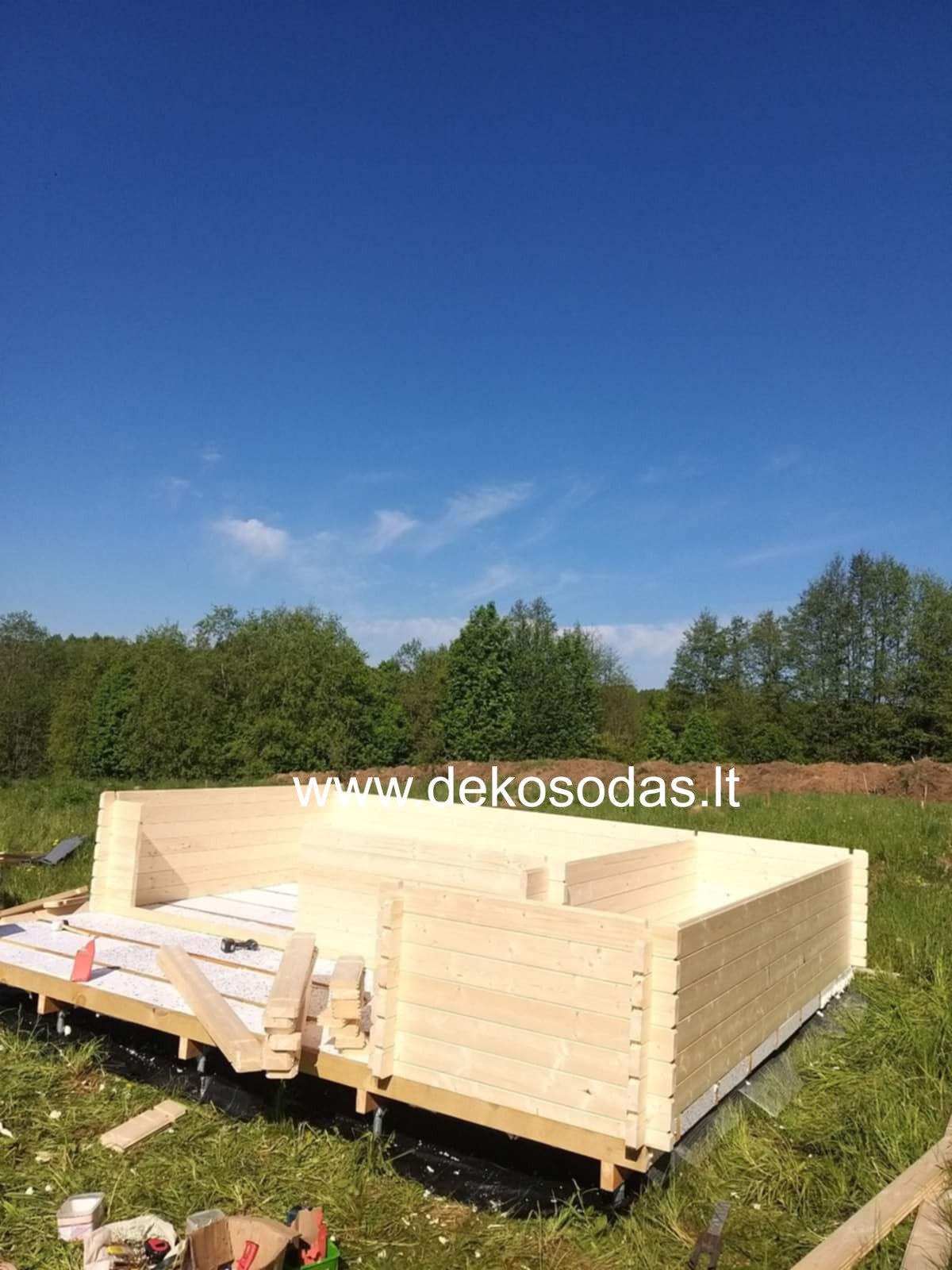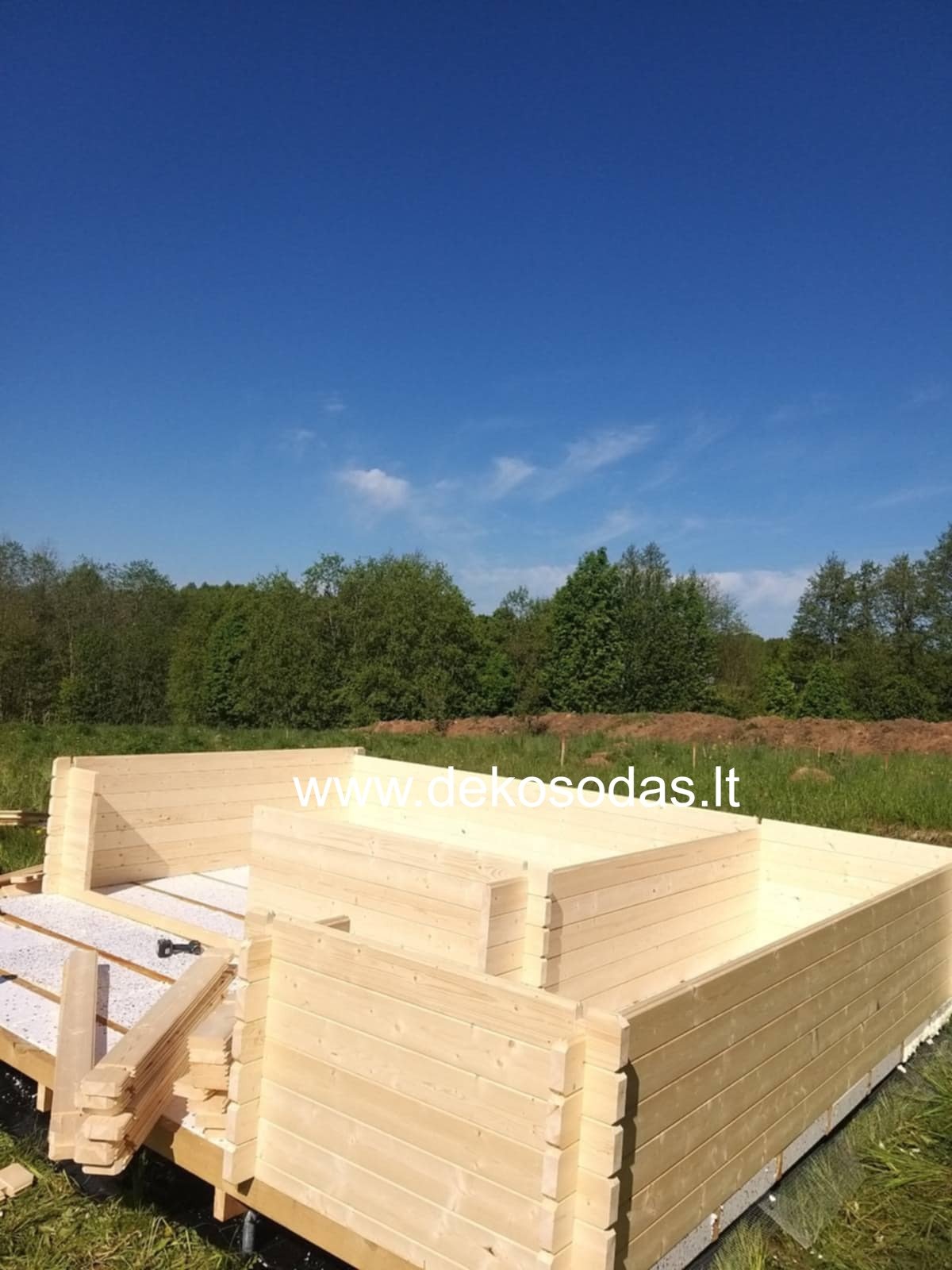 | Sienojų storis | 44 mm, dvigubo špunto, eglės mediena |