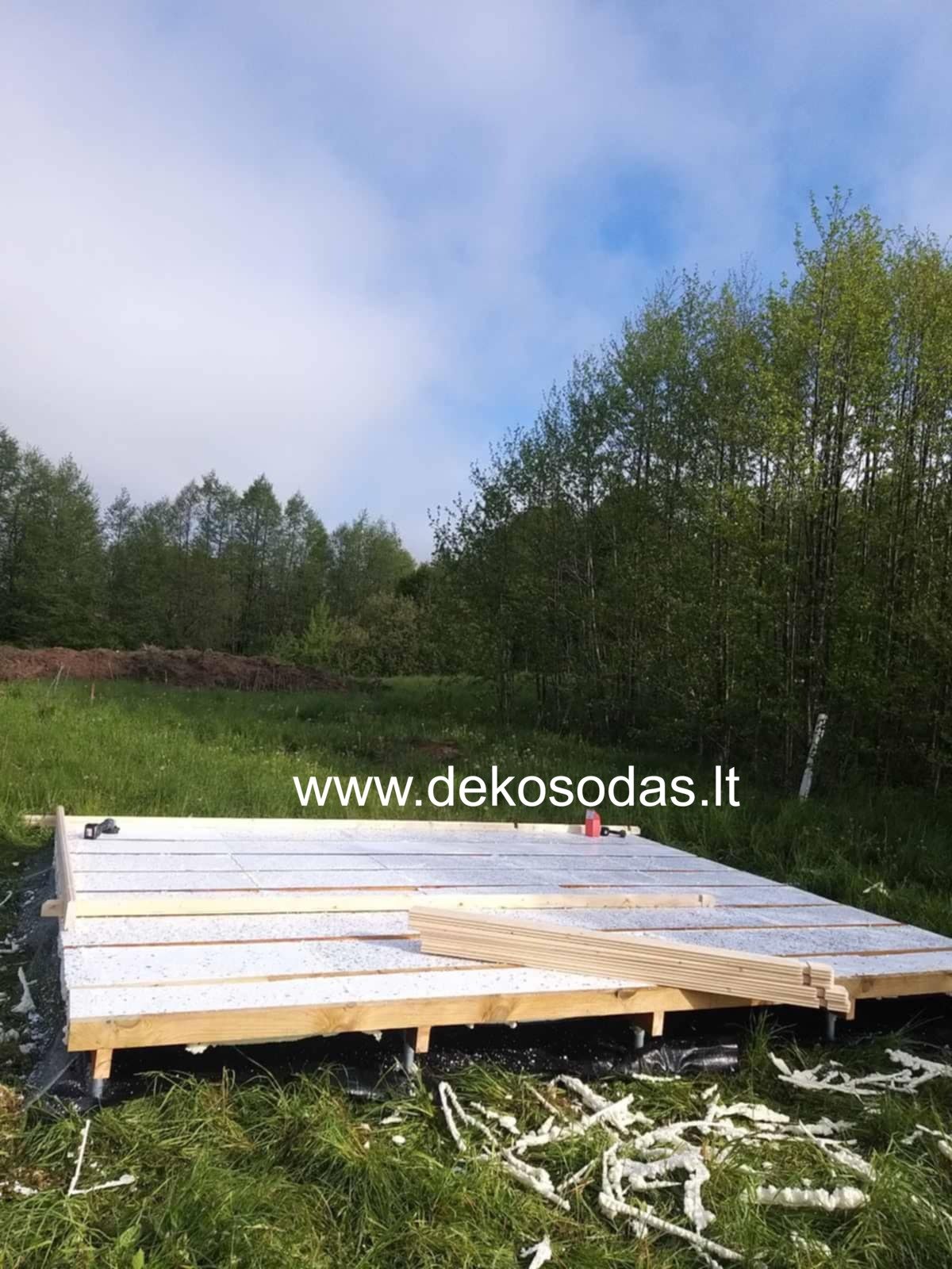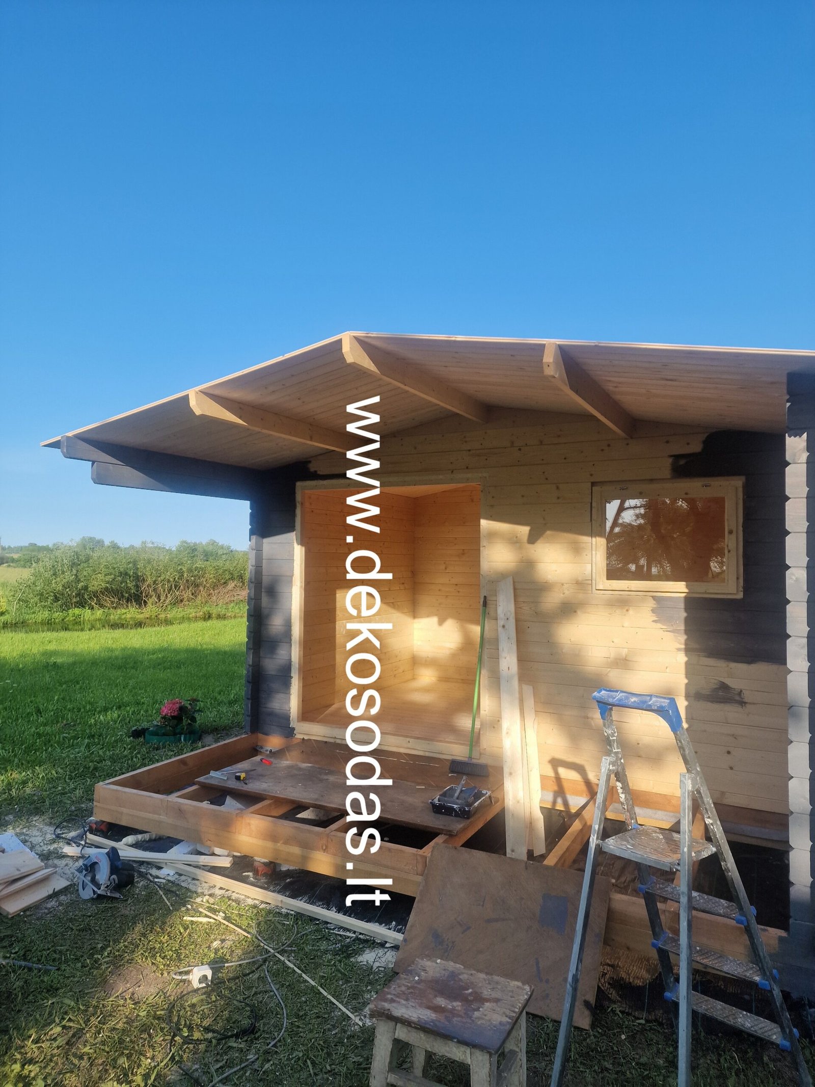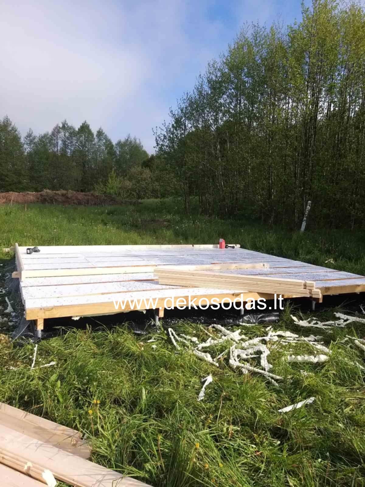 | Sienojų storis | 44 mm, dvigubo špunto, eglės mediena |