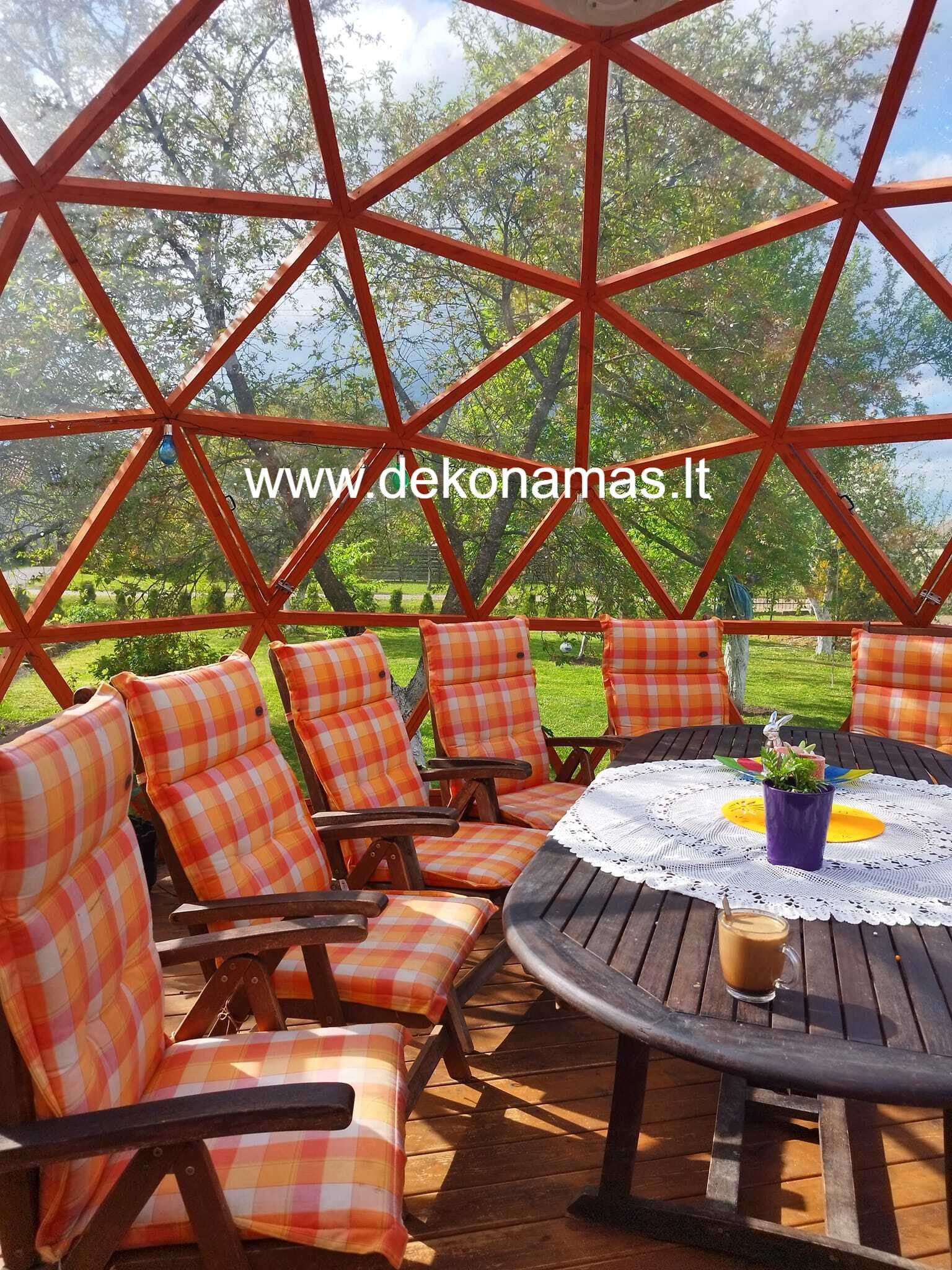 5 m skersmens medinio karkaso kupolas su natūralios medienos apdaila