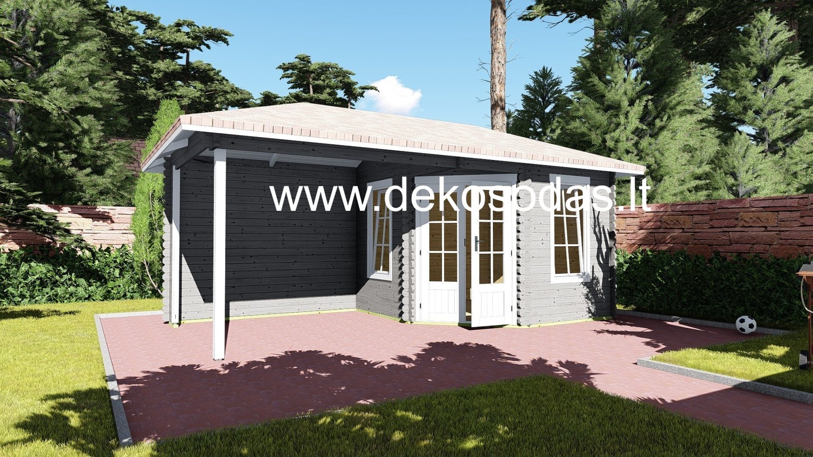 Šis erdvus ir stilingas medinis sodo namelis 580×300 cm su integruota pavėsine yra puikus sprendimas tiems, kurie nori harmoningai suderinti poilsį, sodo gyvenimą ir funkcionalumą. Sienojų storis – 40 mm, todėl konstrukcija yra tvirta, ilgaamžė, tinkama naudojimui ištisus metus. Masyvus 18 mm stogas, tikro stiklo langas, klijuotos medienos durys – viskas, ko reikia kokybiškam sodo nameliui.