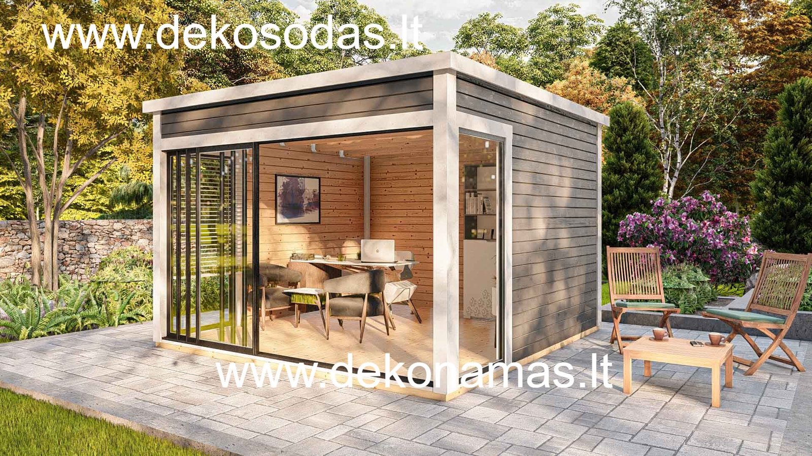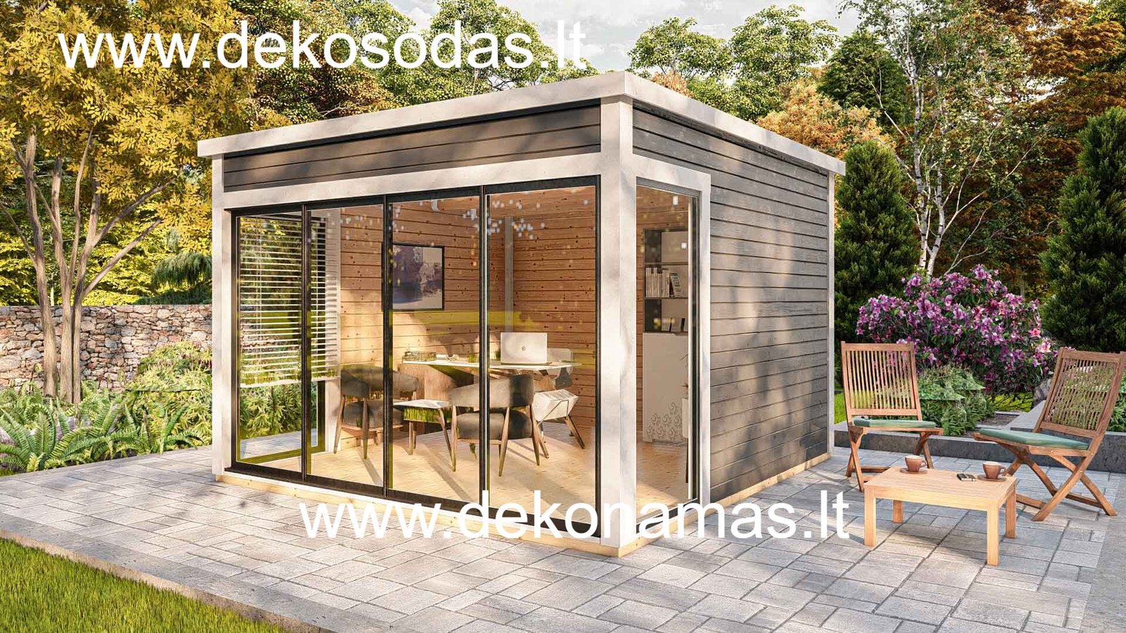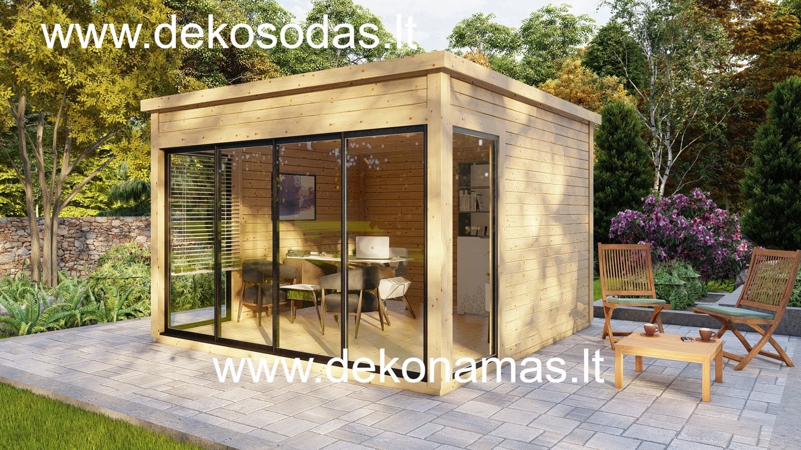 Stilingas ir funkcionalus sodo namelis „Vetra“ – tai puikus pasirinkimas ieškantiems modernaus namelio biurui, studijai ar jaukiam poilsiui gamtoje. Dideli vitrininiai langai, stumdomos aliuminio durys ir plokščias stogas suteikia konstrukcijai šiuolaikiškumo, o 45 mm sienų storis užtikrina šilumos izoliaciją ir stabilumą.