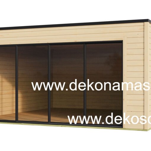 Erdvus interjeras: Šis medinis sodo namelis suteikia daug erdvės, kurią galima pritaikyti įvairiems poreikiams – nuo poilsio kambario iki darbo vietos. Jame galėsite laikyti baldus, meno kūrinius ar kitus daiktus, paversdami šį vasarnamį savo asmenine poilsio erdve.