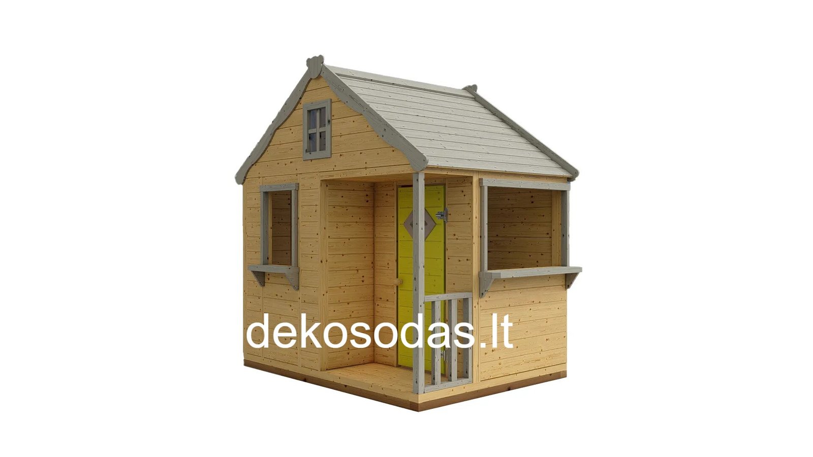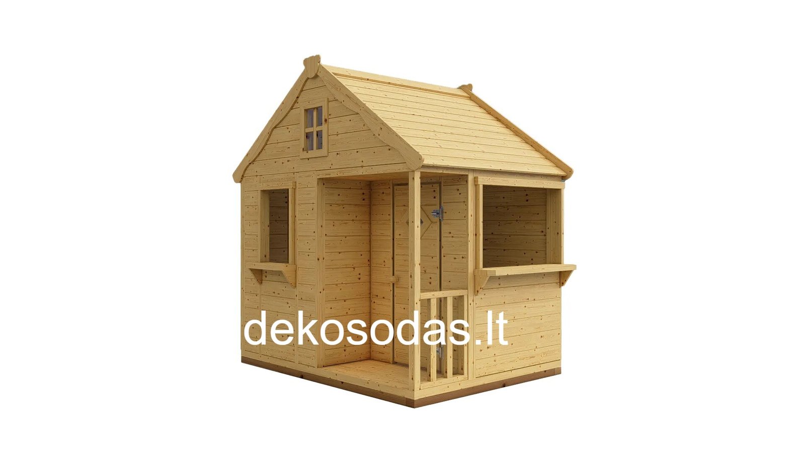 Vaikiškas medinis žaidimų namelis turi nedidelę terasą, kuri suteikia papildomos erdvės žaidimams, poilsiui ar „mini kavinei“ vaikų fantazijai. Dideli langai užtikrina natūralų apšvietimą viduje, o durys su furnitūra leidžia patogiai naudotis nameliu.