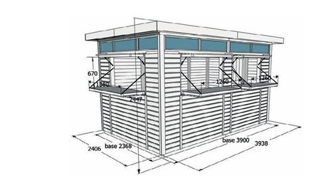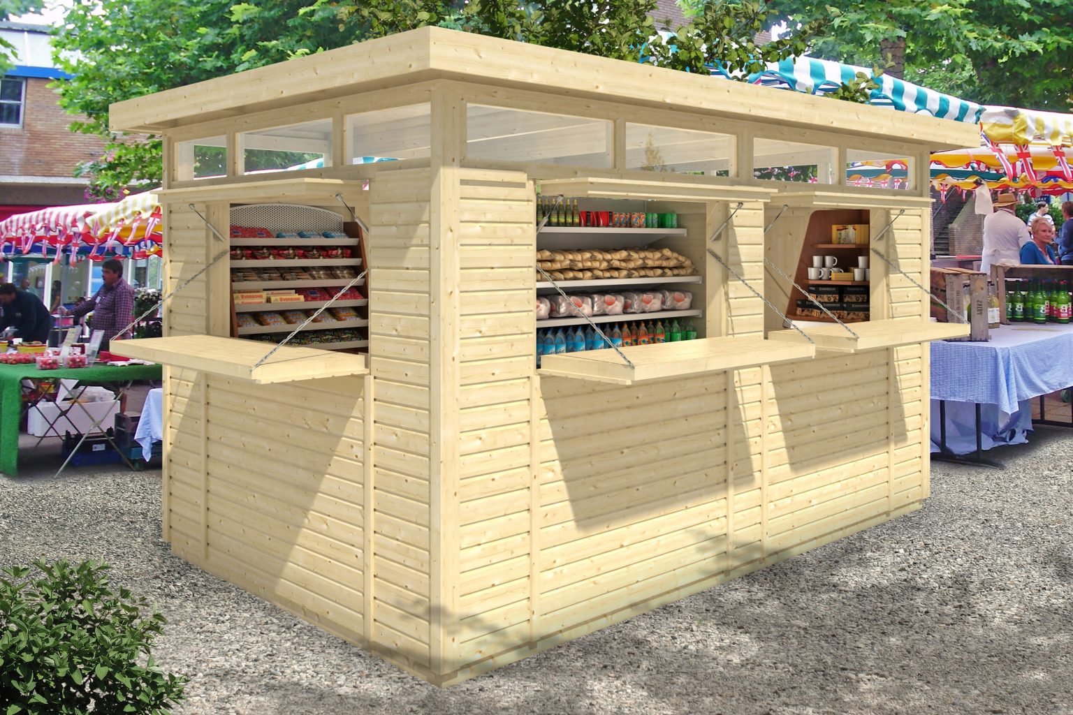 Prekybinis kioskas 394×241 cm, 19 mm medienos konstrukcija su grindimis