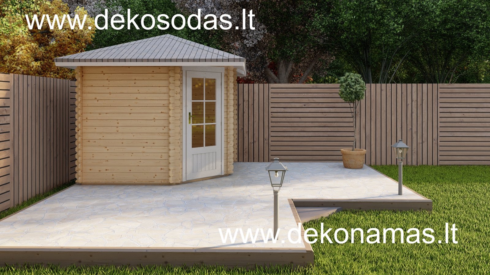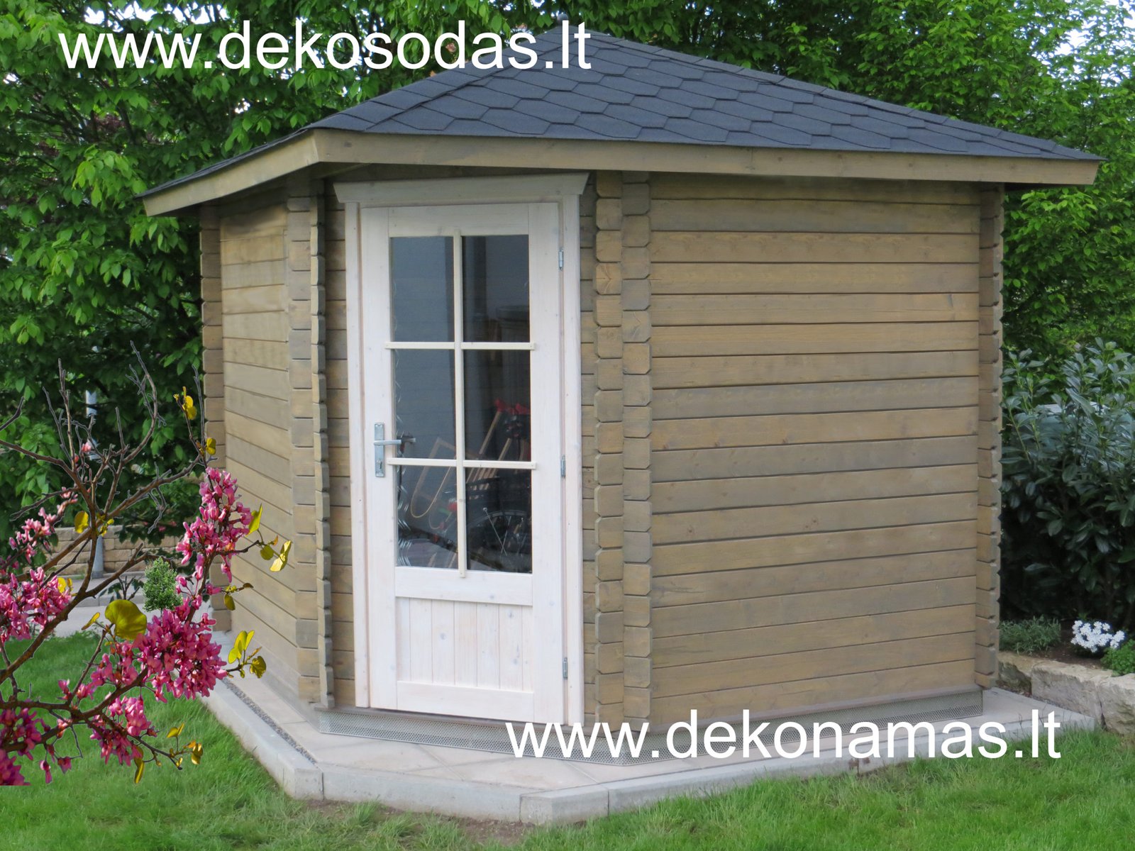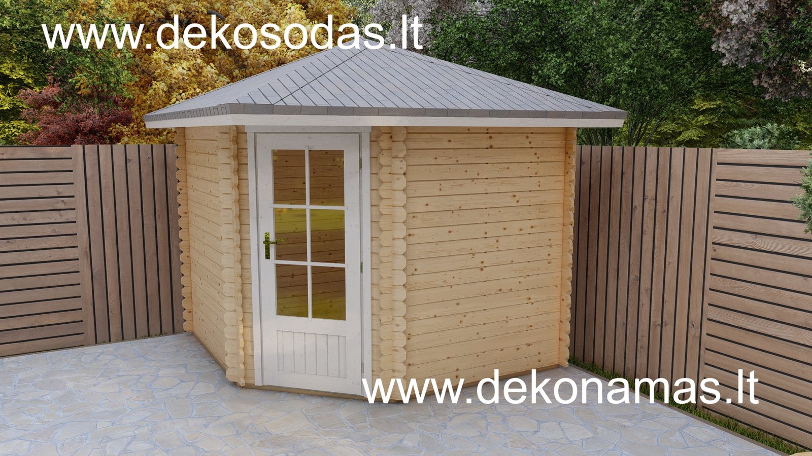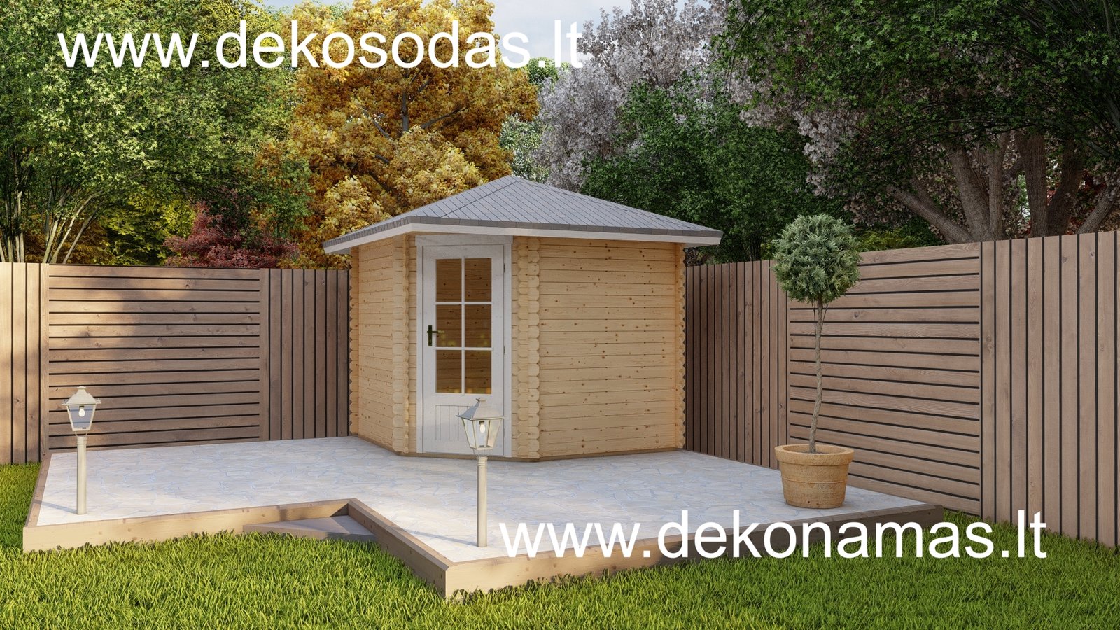 Kampinis medinis sodo namelis 260×260 cm su 40 mm sienojais yra kompaktiškas, tačiau itin tvirtas sprendimas sodo sklypui, kai svarbu optimaliai išnaudoti ribotą erdvę. Dėl kampinės konstrukcijos šis modelis puikiai tinka sklypo kampui, prie tvoros ar mažesniems sodams.