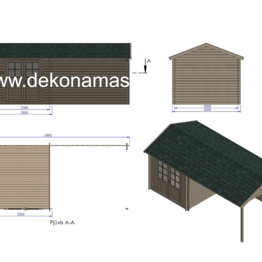 Sodo Namelis-Sandėliukas su Stogine/Pavėsine 5.8 x 3 m