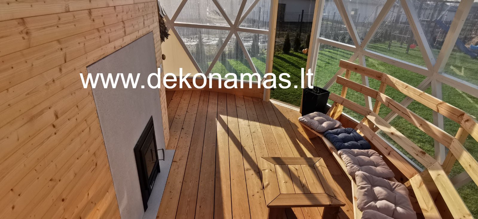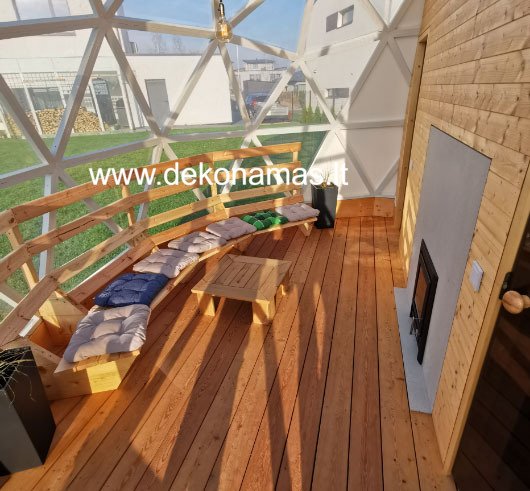 Kupolo dizainas leidžia maksimaliai išnaudoti erdvę, todėl viduje galima įrengti ne tik pirtį, bet ir poilsio zoną, kurioje galima mėgautis arbatos puodeliu po pirties. Tai puiki vieta susirinkti su draugais ar šeima.
