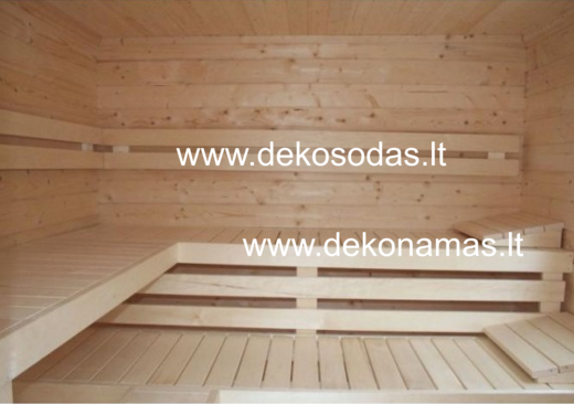 Komplektacijoje nėra pirties pečiaus ir kaminų.
